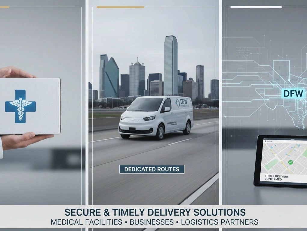 Fenwick Transport provides professional courier and dedicated route solutions for medical facilities, businesses, and logistics partners throughout the Dallas–Fort Worth Metroplex and beyond.